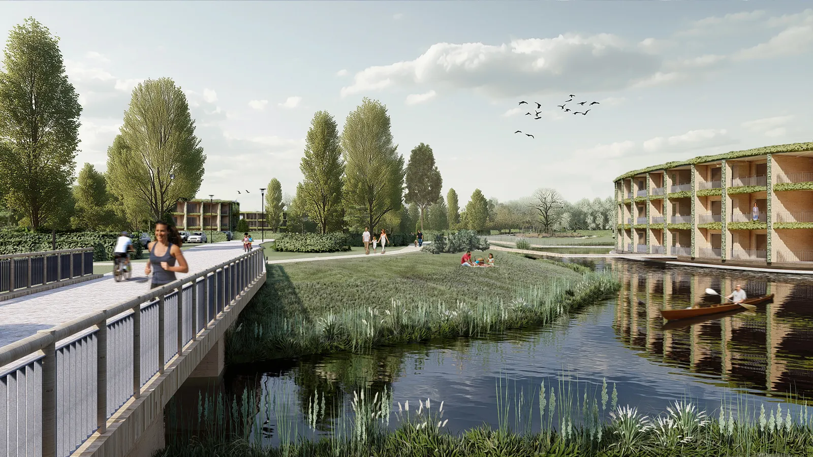 Nederland kan drijvende wijken maken die meebewegen met waterberging. Zo wonen we mooi, efficiënt en duurzaam in onze delta. Voor delta’s wereldwijd wordt Nederland weer een gidsland.